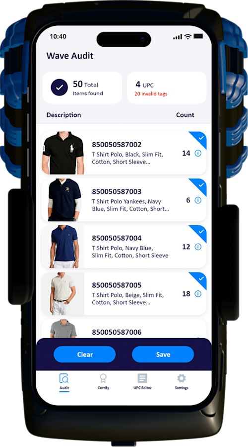 SimplyRFiD offers the Wave: Audit app to ensure quality and accuracy with SGTIN/RFID compliance. Our all-in-one solution app combines SGTIN decoding, counts, and a certification report tool to provide manufacturers with a simple and effective way to perform quality assurance and audit their shipments. With this tool, manufacturers can guarantee that their shipments meet SGTIN/RFID compliance standards, save UPC and SGTIN scanned reports via CSV, and establish proper tagging methods.